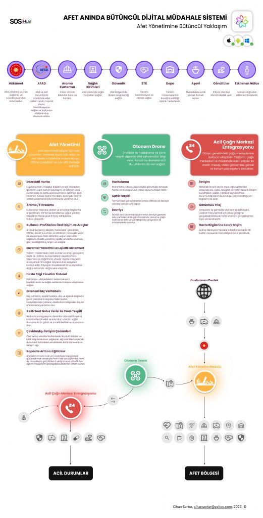 Bu doğrultuda depolara envanter ve lojistik çözümleri sunarken, arama kurtarma ekiplerine enkaz bildirimi ve ekiplerin konumları gibi bilgileri sağlayacak, doktorların da çok dilde ilaç bilgileri ve online hasta raporu tutabilmelerini sağlayacaktır. Afetzedeler sistem üzerinden enkazları, aşevlerini, depolardaki envanter hatta bir ürünün geliş tarihine ulaşabilecekler.